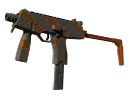 About SlideManufactured in Switzerland, the cutting-edge MP9 SMG is an ergonomic polymer weapon favored by private security firms. It has been spray-painted using short pieces of tape as stencils.