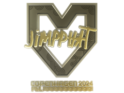 About JimpphatThis sticker can be applied to any weapon you own and can be scraped to look more worn. You can scrape the same sticker multiple times, making it a bit more worn each time, until it is removed from the weapon.<br><br>This gold sticker was autographed by professional player Jimi Salo playing for MOUZ at the PGL Copenhagen 2024 CS2 Major Championship.