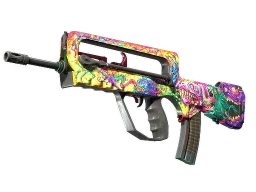 The FAMAS | Bad Trip is a Covert-grade skin in Counter-Strike 2, featuring the Bad Trip finish on the FAMAS. With a Covert rarity classification, it has approximately a ~0.26% chance of dropping from case openings.
