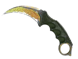 With its curved blade mimicking a tiger's claw, the karambit was developed as part of the southeast Asian martial discipline of silat. The knife is typically used with a reverse grip, with the finger ring on the index finger. The ★ Karambit | Lore is a Covert-grade knife in Counter-Strike 2, featuring the Lore finish on the Karambit. With a Covert rarity classification, it has approximately a ~0.26% chance of dropping from case openings.