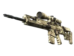 The SCAR-20 is a semi-automatic sniper rifle that trades a high rate of fire and powerful long-distance damage for sluggish movement speed and big price tag. It has been spray-painted using mesh fencing and cardboard cutouts as stencils. <i>A predator is a predator, no matter the environment</i> The SCAR-20 | Palm is an Industrial-grade skin in Counter-Strike 2, featuring the Palm finish on the SCAR-20.