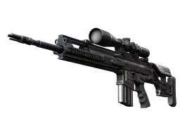 The SCAR-20 is a semi-automatic sniper rifle that trades a high rate of fire and powerful long-distance damage for sluggish movement speed and big price tag. It has been custom painted with a monochrome black design and silver inlays.\n\n<i>FOR USE BY AUTHORIZED CT AGENTS ONLY</i> The SCAR-20 | Trail Blazer is a Mil-Spec-grade skin in Counter-Strike 2, featuring the Trail Blazer finish on the SCAR-20. With a Mil-Spec rarity classification, it has approximately a ~15.98% chance of dropping from case openings.