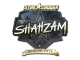 This sticker can be applied to any weapon you own and can be scraped to look more worn. You can scrape the same sticker multiple times, making it a bit more worn each time, until it is removed from the weapon.<br><br>This gold sticker was autographed by professional player Shahzeeb Khan playing for compLexity Gaming at Berlin 2019. The Sticker | ShahZaM (Gold) | Berlin 2019 is an Extraordinary-grade skin in Counter-Strike 2. With a Extraordinary rarity classification, it has approximately a ~0.26% chance of dropping from case openings.